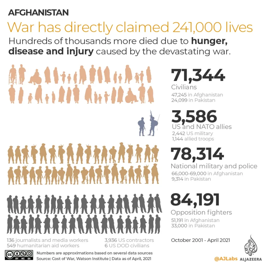 In Afghanistan, where the war began, an estimated 241,000 people perished. In Iraq, at least 210,090 civilians have been killed since 2003. These aren’t combatants with guns; they’re families caught between American bombs and insurgent bullets, people who woke up one morning and found their world turned to fire.